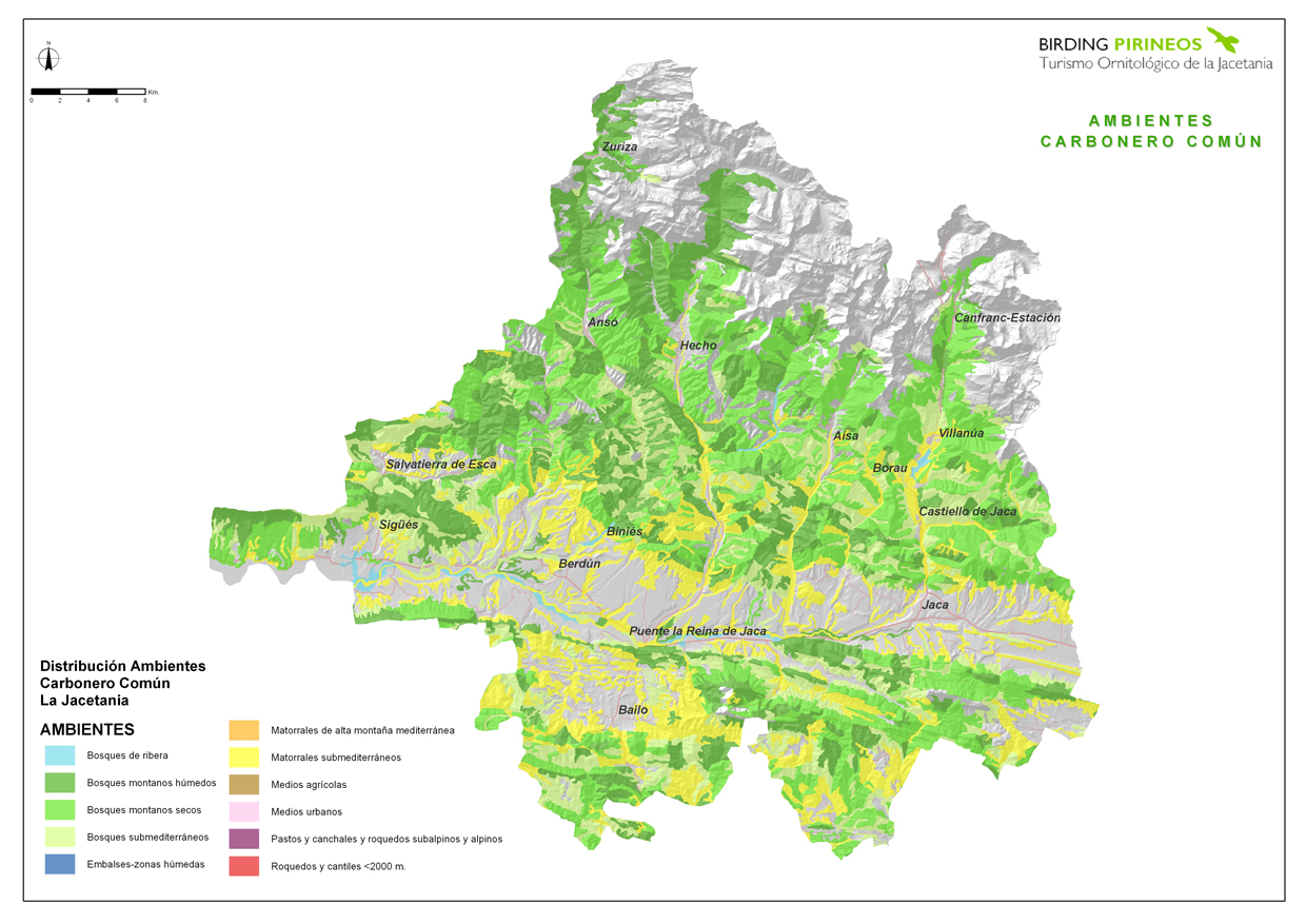 DISTRIBUCIÓN ESPACIAL: Matorrales submediterráneos, bosques submediterráneos, bosques montanos secos, bosques montanos húmedos, piso subalpino (pino negro) y bosques de ribera.